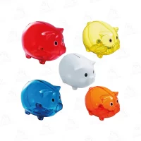 - Descripción:Alcancía de plástico traslúcido, con tapa en la parte interior.