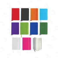 - Libreta cubierta de poliuretano de 80 hojas de papel crema con línea, banda elástica, marcador de cinta.